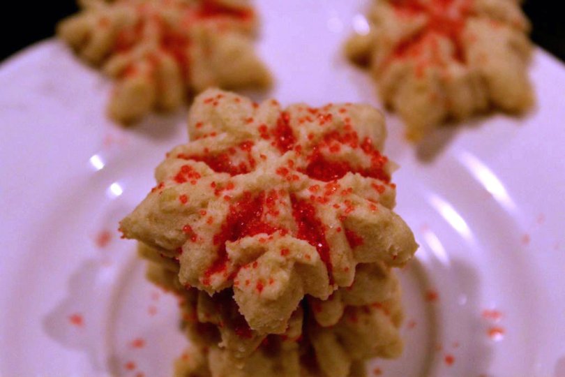 Cool before serving. Makes 6 dozen small spritz cookies.